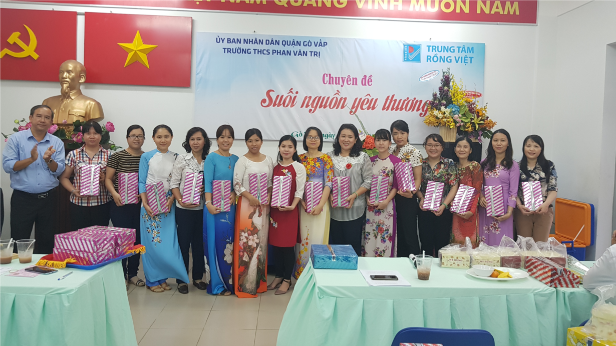 BGH nhà trường tặng quà 8/3 cho giáo viên, nhân viên