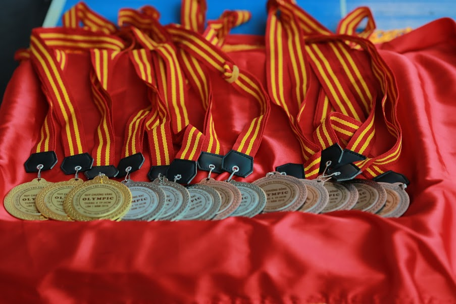 Thầy - trò Trường THCS Phan Văn Trị vui mừng đón nhận các huy chương Olympic tháng 4