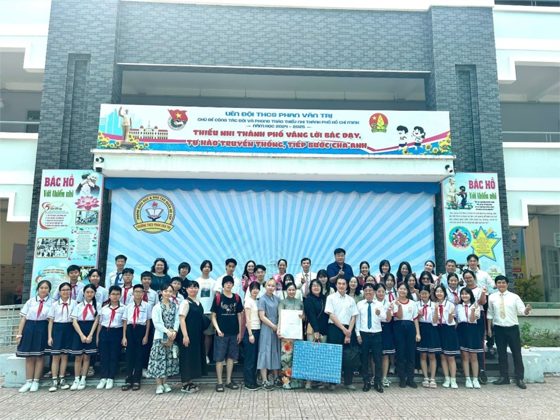 Hình 2: Trường THCS Phan Văn Trị tặng quà lưu niệm đến trường Đại học Mie