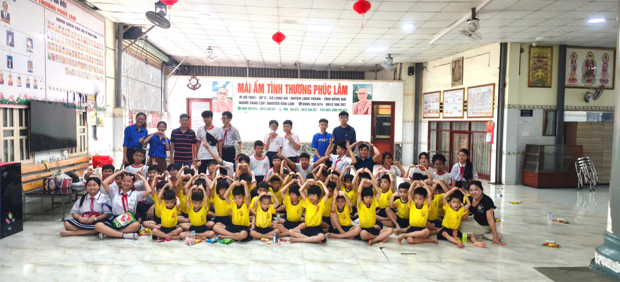 Đoàn trường THCS Phan Văn Trị chụp ảnh lưu niệm với các em tại mái ấm Phúc Lâm